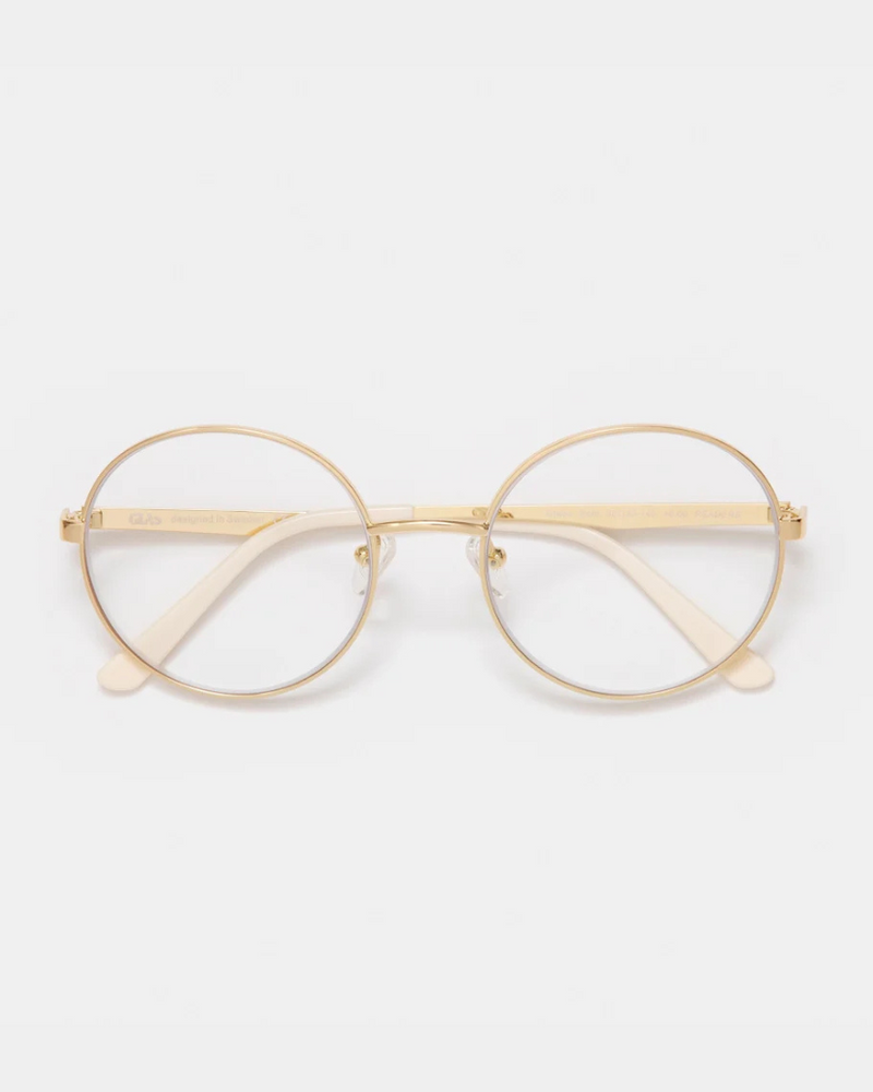 Elevate your style with the Grace Gold Blue Light glasses, featuring a luxurious gold finish that exudes timeless elegance. Their refined round frames offer a classic silhouette while reducing blue light exposure, making them perfect for both work and leisure with a sophisticated touch.